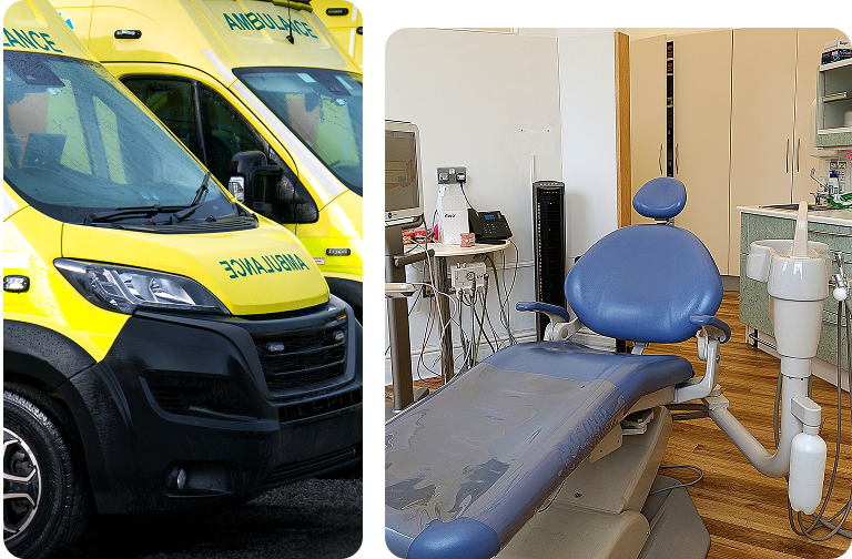 Additionally, there are approximately 80 NHS walk-in health clinics across the United Kingdom (mostly in England), where residents can get treated seven days a week for minor injuries or illnesses (for example, fractures, burns, small cuts, bruises, infections, etc.).